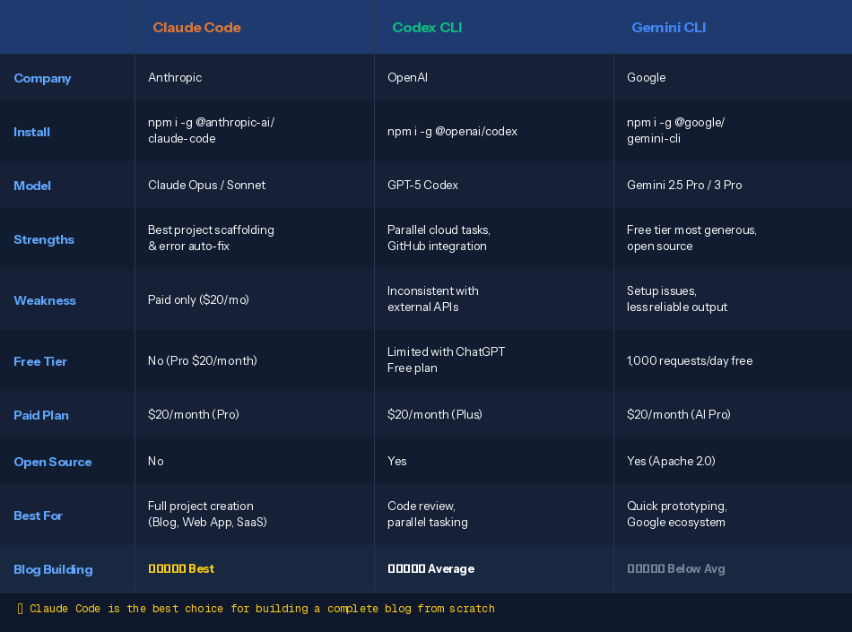 Gemini CLI is open source (Apache 2.0) with the most generous free tier — 60 requests per minute and 1,000 per day with a personal Google account. However, users report frequent issues with setup and MCP integration, making it difficult to get real value in practice.