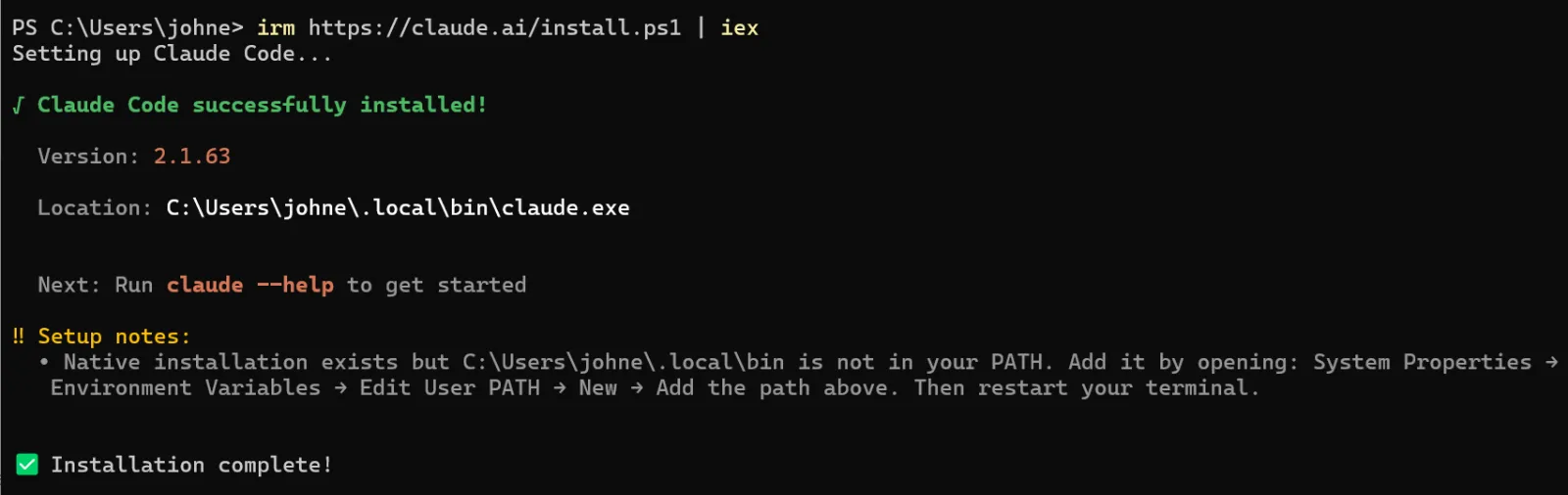The native installer is now the recommended method. No Node.js required.