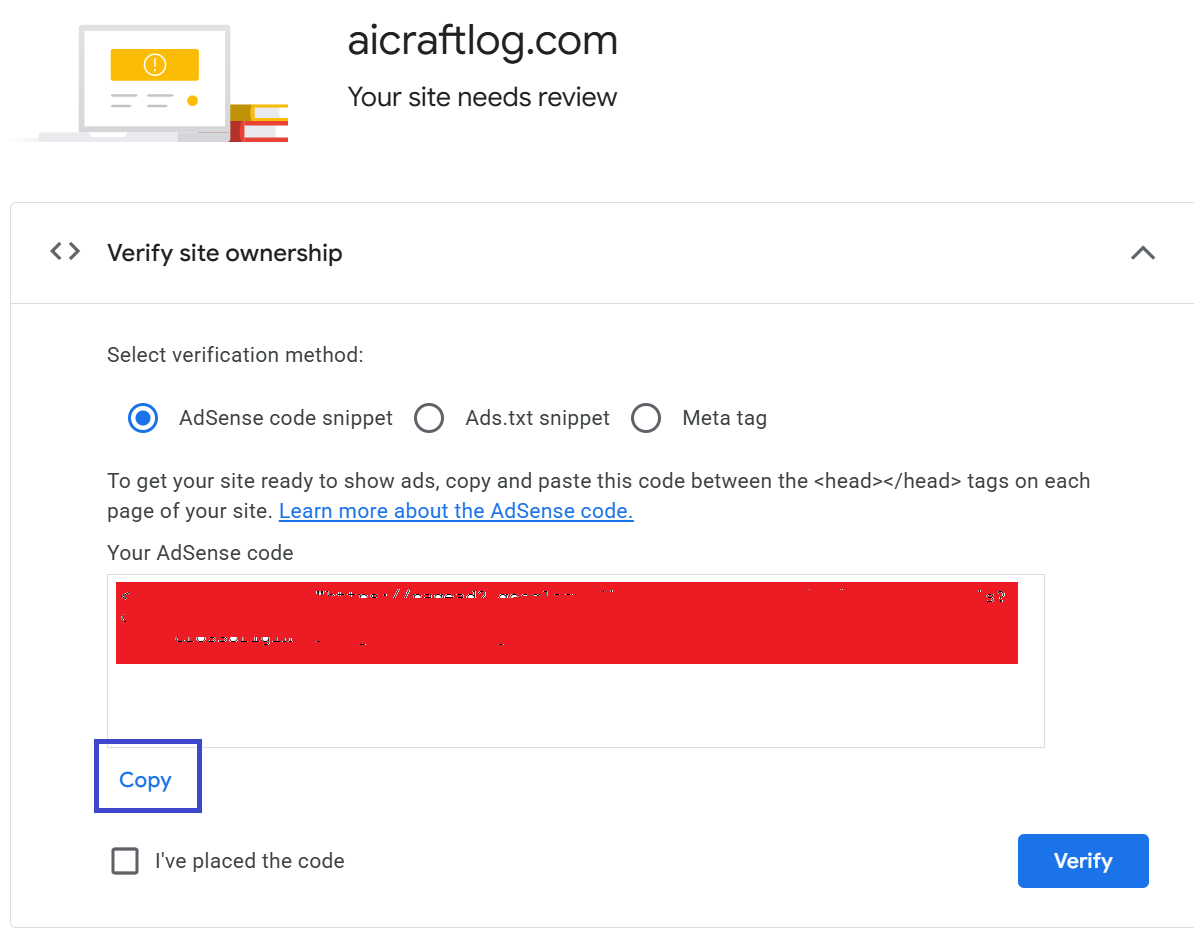 Google checks your site for the AdSense code and confirms ownership.