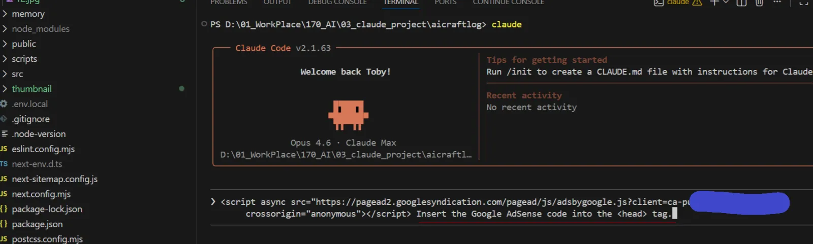 Used AI to improve the blog — Fed the AdSense guide to Claude Code for automatic optimization