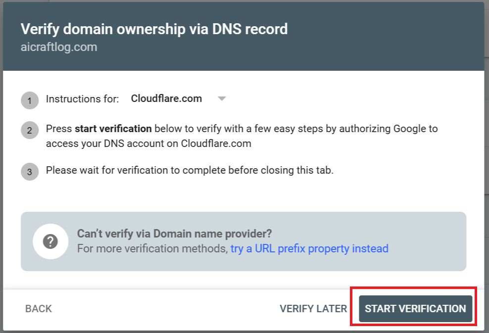 DNS propagation can take a few minutes to a few hours. Click the verify button, and once it succeeds, move to the next step.