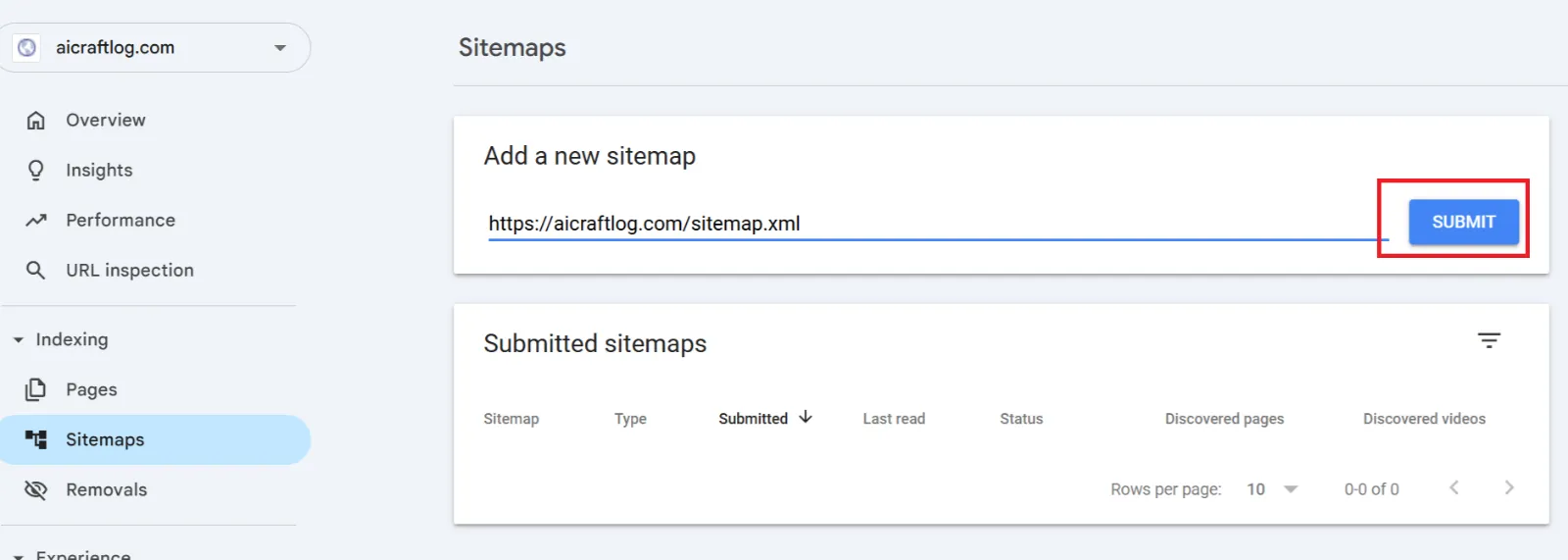 In Search Console, click "Sitemaps" in the left menu and enter your sitemap URL: